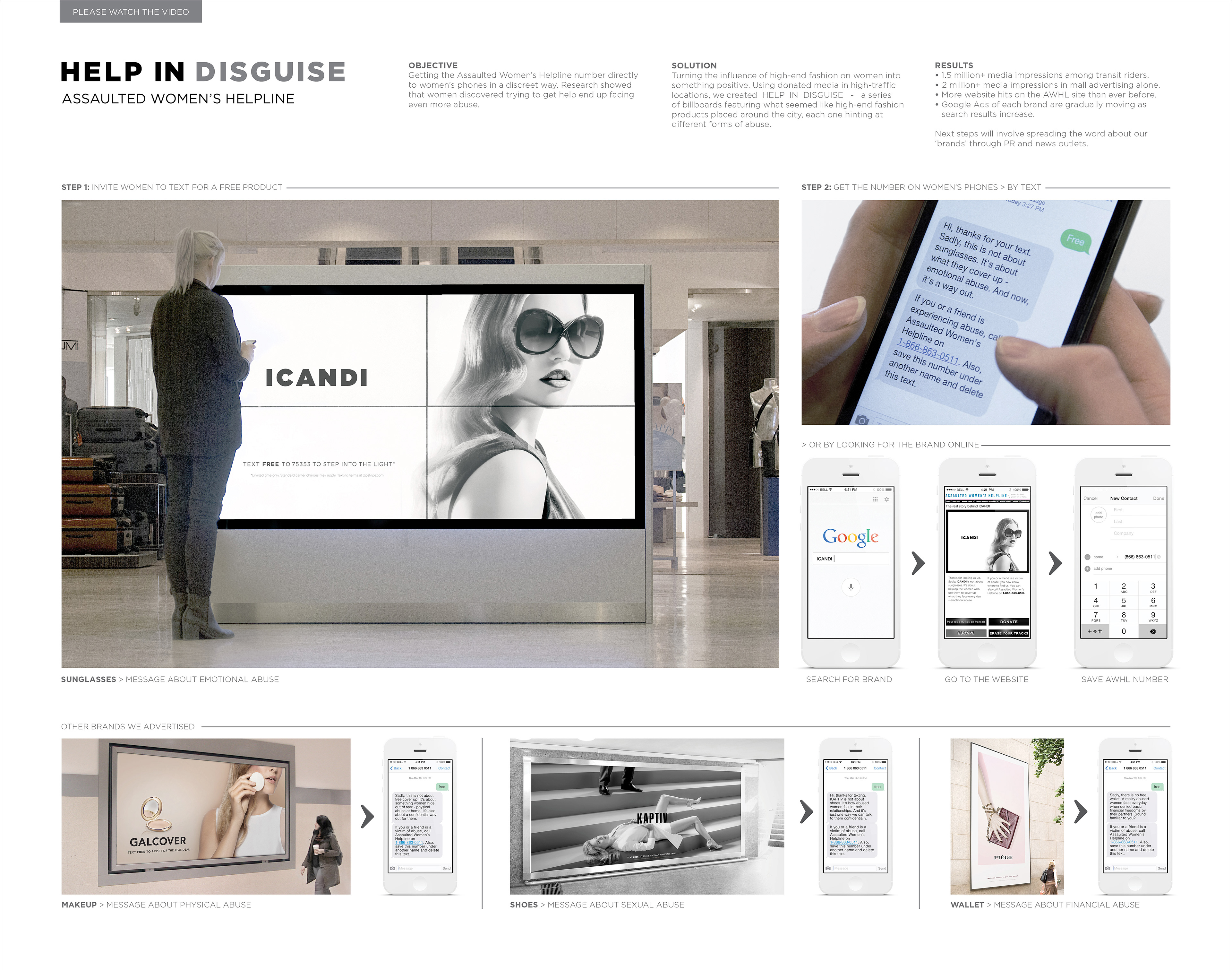 The Assaulted Women’s Helpline is a confidential service in Toronto that often has trouble reaching its target: women experiencing abuse. The challenge: 1. Getting their essential, but hard-to-memorize number (1-866-863-0511) on women’s phones directly and discreetly. 2. Making sure the abuser doesn't find out since research showed the abuse becomes worse if women are discovered trying to get help. The solution: Getting the number to women’s phones directly - by hiding in plain sight. AWARDS/RECOGNITION: Webby Awards - Official Honouree