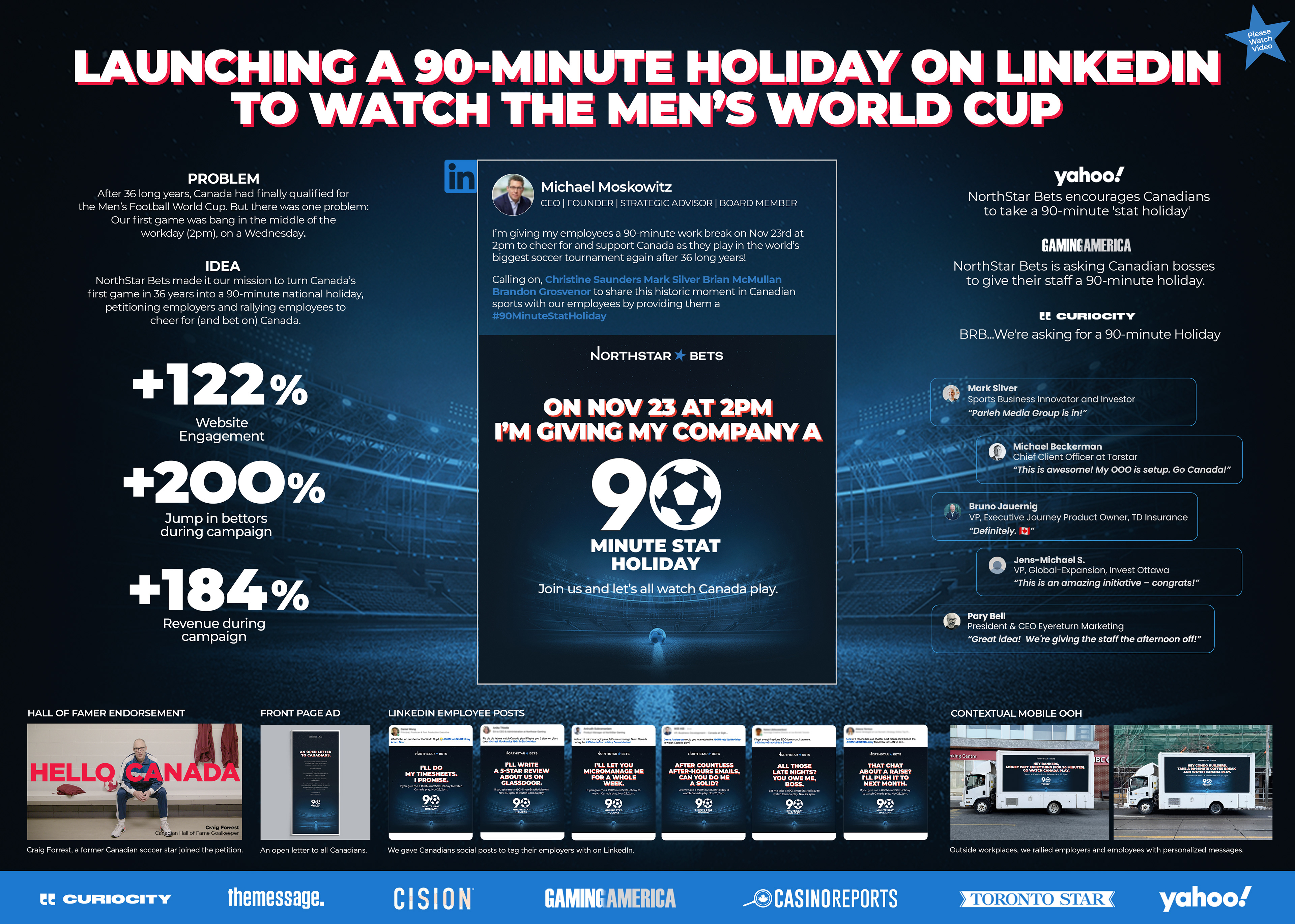 After 36 long years, Canada’s men’s soccer team finally kicked their way back into the World Cup. One snag: their first match landed smack in the middle of a Wednesday afternoon. Enter NorthStar Bets, giving fans the perfect excuse to ditch work and cheer by inventing the “90-Minute Stat Holiday.”